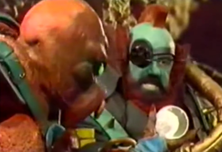 Cue a few minutes of Arr making Bhodi crawl around like a worm, until finally MOM contacts Bhodi through his ring and gives him a vague suggestion to use it to win. Somehow, this works, although it’s all very confusing and involves a lot of muddled special effects. But the end result is that the Warlord of Arr — and his space station — are completely destroyed.