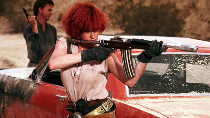 Happily, Slim is able to salvage Cherry’s basic memory — her soul, as it were — which can easily be installed into a new chassis. The problem: Cherry 2000 bodies can only be found in The Zone (there’s always one of those) a dangerous wasteland ruled by Lester, leader of the Sky Ranch cult (kind of like Club Med, but with pillaging) and, all in all, the most positive and encouraging psychopath ever.