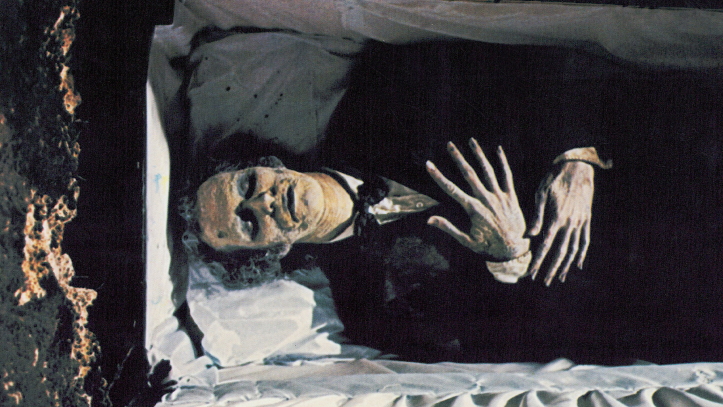 Who is Alan? Alan is a man who needs a slap. Now, I’m fairly nonviolent and usually try and cut slack to those with whom I share a first name, but this jamoke is on his own. Before he’s spoken a single word, you want nothing more than to see him sprawled on the ground, holding his jaw and seeing stars. Goofy facial hair? Smack! Insinuating coerced sexual favors? Smack! Ridiculous pants? Smack! Ascot? Smack! Walking stick? Smack! We are now approximately ten minutes into the movie. By the time Alan has decided to sleep with a corpse and whisper things in its ear, you’ve most likely graduated from a desire to hit something and entered the realm of blind, hysterical rage.