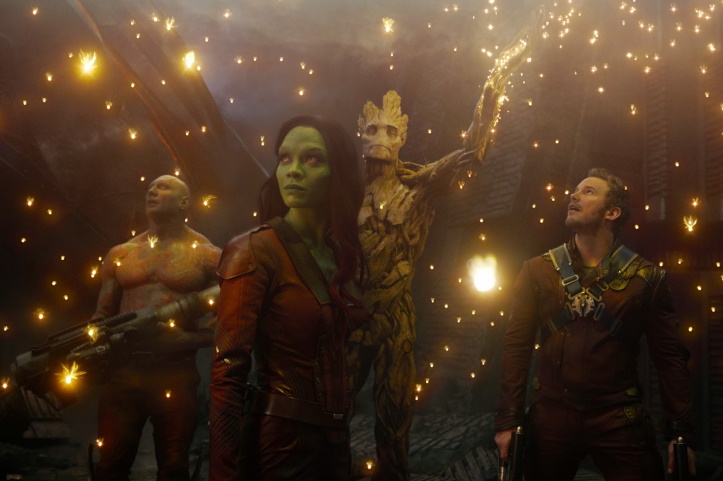 This sphere McGuffin gradually attracts a crew of outsiders who find themselves traveling — at first reluctantly, and later enthusiastically — with Quill. Gamora is a green-skinned fighter who’s rebelling against her “dad,” Rocket’s a genetically modified raccoon who is insanely good with technology and firepower, Groot is a giant walking tree who can only say three words, and Drax is a literal-minded musclehead out for some serious revenge. These loners and losers forge a friendship together in space jail that gradually transforms into a superhero team. Of sorts.