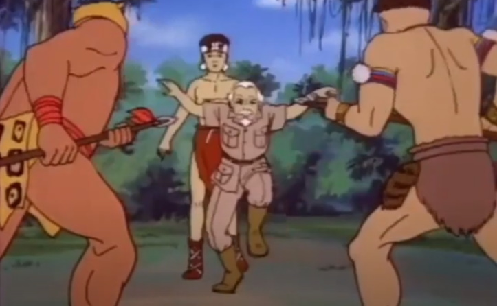 When the native kid is being cornered a second time, Daniel pops out of a bush and does a completely unnecessary front-flip before grabbing the dude’s spear. I have to imagine that it’s a little jarring to be about your daily business only to hear a scream and see a kid from California flipping right at you. Stories for the dinner table that night, am I right?
