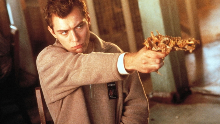 Jennifer Jason Leigh plays Allegra Geller, “the best game designer in the entire world” who gets targeted at a demonstration for developing a new VR title called eXistenZ. She’s hustled off to safety by Ted Pikul (Jude Law), a marketing publicist who’s never jacked into the matrix before.