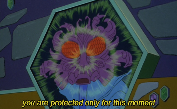 One thing that’s quickly apparent in this episode is how little any of the characters move, save for eyes shifting back and forth and maybe their mouths flapping. This extreme economy of movement was for budgetary reasons, but I can’t help think that everyone’s been petrified somehow. It brings to mind those “animated comic books” that are sometimes done.