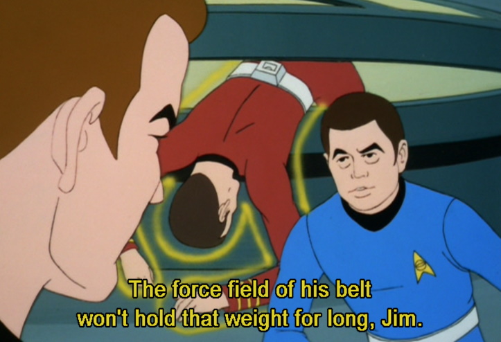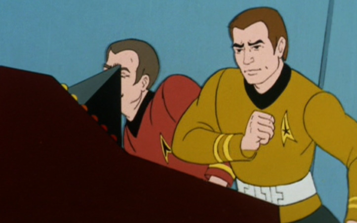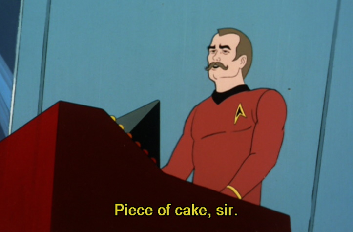 And the hero of the moment is Mister Kyle, a character from the original series who was played by John Winston but is voiced here by Jimmy Doohan. I never, ever knew this before today, but Kyle came back to play the Reliant’s comm officer in Star Trek II. I guess I’m not quite the Trekkie I thought I was!
