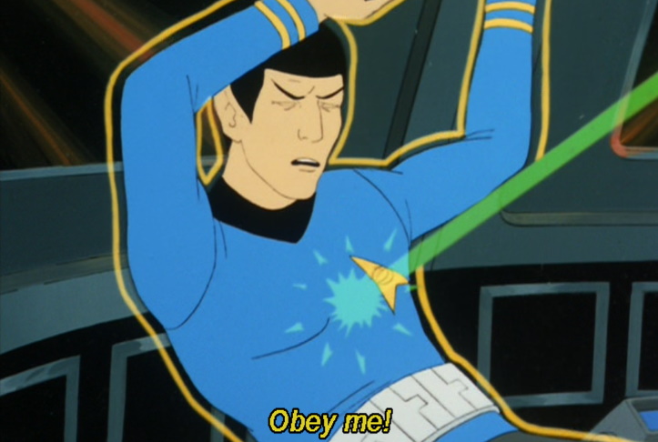 Oh hey, not so nice when someone else is using the pokin’ phaser on you, is it, Spock?