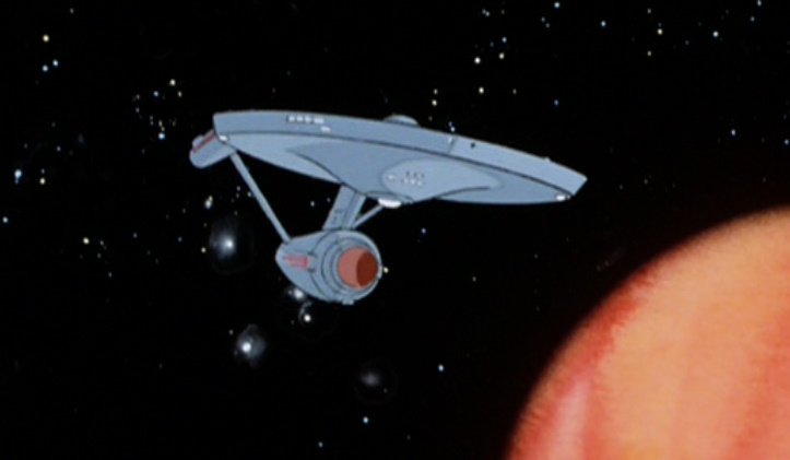 We’re going to start with Season 1 Episode 1, “Beyond the Farthest Star.” There are two things that instantly leap out at me during the opening credits: I actually do like the animated design of the Enterprise, but they absolutely butchered the theme song with a totally schmaltzy, ’70s rendition that is a travesty to humankind. Seriously, listen to it. It’s like they’re about to kick off a variety show for the Bradys or something.