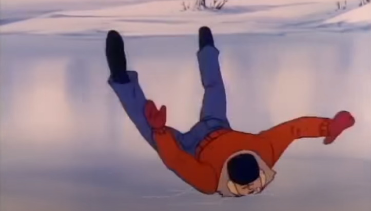 Anyway, we open this PSA on a frozen lake, mulling in its evil ways how to kill all of the innocent children playing about. No need to really do anything, Mr. Lake, because here comes Davey, dashing willingly to his death! Showing off for his friends, Davey does an impressive run-and-slide across the lake. His friends, running as dramatic as all get out, are worried. They saw a G.I. Joe about, and they know that means trouble: “Look out! The ice could break!”