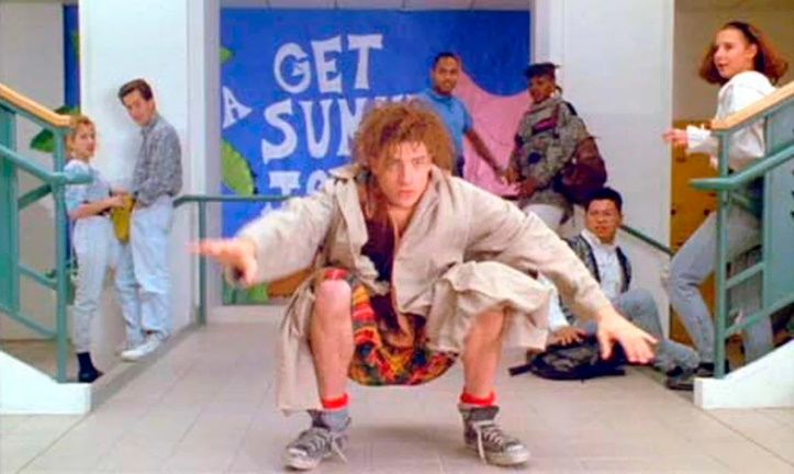 Before long, Link’s escapades (which include eating a dissection frog, carjacking a driver’s ed sedan, and dancing like a maniac whenever anyone turns on some tunes) start to shift the status quo around the school. Most notably, it brings Dave closer to his crush Robyn (Megan Ward), who’s a little out of his league and kind of weirded out that Dave carries around a picture of the two of them taking a bath together as kids. Even I know that’s not a slick move. But before Dave and Robyn can find love, they have to overcome Dave’s extreme uptight nature and Matt (Michael DeLuise, who was a headbanger in Wayne’s World), a Jock with a minor in Bully who clearly idolizes Vanilla Ice.