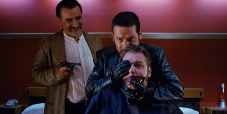 Here’s the rundown. Midori, a recently wed Japanese woman on her honeymoon with her new husband, Yukio, decides she doesn’t want to be married, so she fakes her own kidnapping to go meet a lover who never shows. Colin (Crowe), who’s a little short on cash but extremely well endowed in the sideburn department, takes a job as a getaway driver for some Afghani bank robbers. When the job goes bad and one of the robbers is killed in the bank, they take a hostage, our darling Midori on the run from her husband. Once the remaining two robbers are safe and away from the bank, they’re about to kill Midori for having seen their faces. Colin is forced to kill one of them to save the innocent woman, and the remaining robber is allowed to leave. Good idea, that.