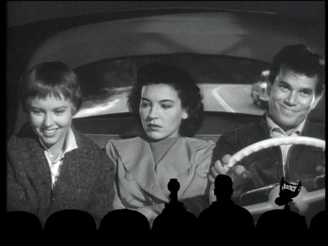 Speaking of stupid kids, our main feature’s protagonist Jimmy Wilson is one of less astute lead characters we’ve encountered in these movies, and that’s saying something. The riffing focuses primarily on his gullibility. Certainly, you can shake your head in disbelief at how he doesn’t suspect that being paid large amounts of cash to deliver packages in the small hours might be a little sketchy. But there’s also his inability to learn from his mistakes. Consider the whole essay contest fiasco, where he pretended to have ideal parents when they’re really a couple of Lockhorn-style drunkards. You’d think the derisive laughter of his classmates when his mom shows up at the graduation planning meeting absolutely plastered would shame him into keeping his yap shut on the subject in the future. But on meeting curvy blonde nightclub singer Kitty Reed, he’s back to spouting the same falsehoods. Sad, really.