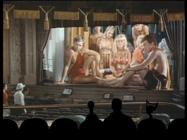 As you may have guessed from my earlier remarks, the short serves as the inspiration for the host segments as Mike and the Bots are visited by the singing and dancing woman from that production. Particularly notable are the creative designs featured when the Bots are converted into kitchen appliances in the penultimate host segment.
