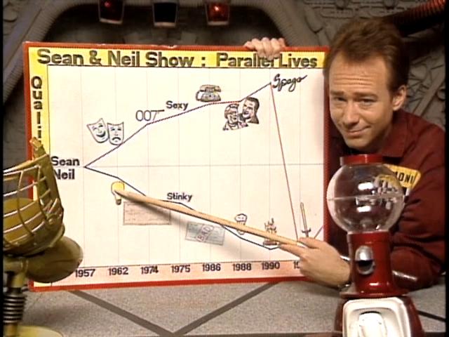 Of the host segments, it’s clear that the best one is where they chart and compare the life fortunes of Sean and Neil Connery. Obviously, this occurred well before the former made his much-derided appearance in League of Extraordinary Gentlemen. Meanwhile, the one where Torgo returns to Deep 13 with some Mr. Pibb makes more sense if you’ve watched the episodes in order.