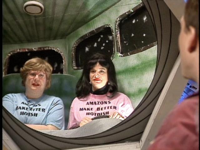 It was so bad that, combined with the androgyny of the name, I thought Brett Somers was supposed to be a man. A bit more nasal and a bit less smoker’s voice would have made it more convincing. At least his takes on Charles Nelson Reilley and Nipsy Russell were passable. The best one was when they were visited by a pair of Amazons in their space minivan, hilariously portrayed by Bridget and Mary Jo as Midwestern soccer moms. Though considering the high percentage of people of Scandinavian descent in that region, you’d think that characterization would be more appropriate for Valkyries.
