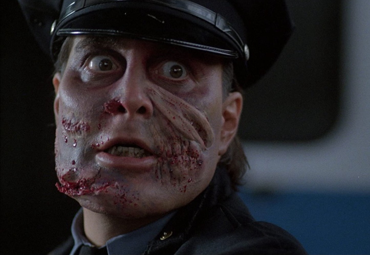 All you really need know about this is that it stars chin-affluent Robert Z’Dar as a hulking, disfigured police officer who’s both undead and a homicidal maniac. So, a zombie cop. I guess the idea here was to give the killer an extra dimension of terror by having him operate under the guise of an assumed protector, but really, when you’re 225 pounds of armed, walking undead, you don’t need a badge to make you scarier.