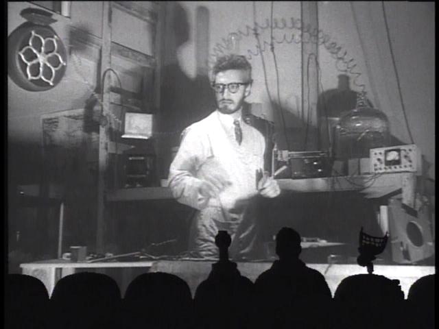 The movie itself has an unusual history. Shot back in 1957, it spent the next thirty-seven years collecting dust. It’s quite probable that its screening on MST3K was the first time it was seen by the general viewing public. What a way to premiere. Another curious aspect involves Aldo Farnese, the actor who portrays spirit radio inventor Henry Krasker and spent most of his career hosting a children’s show on a Philadelphia TV station (Pennsylvania, not Illinois). Apparently, he died two days before this episode first aired (insert Twilight Zone music should you so desire).