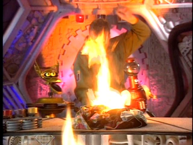 Though it’s a cold comfort, as the host segments are the worst of the season, which took some doing. The problem is that the Brains are indulging in therapeutic writing over their unhappy experience from making the movie, specifically regarding their toxic relationship with Gramercy Pictures. This sort of thing rarely produces quality entertainment. The fact that such writing is often infused with bile and resentment is even more deadly for comedy, as these are poor ingredients for humor (though I imagine some would disagree with me on that point). The only therapeutic writing I’ve encountered which was enjoyable comes from Robert Holmes, specifically the Doctor Who serials “Terror of the Autons” and “The Sun Makers”. As a result, the only good segment is where they’re shooting Crow’s Earth vs. Soup script.