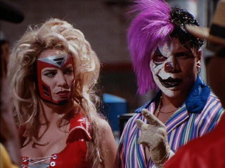 Since it’s a sequel, this flick demands twice the threat for our heroine. Angel City’s been suffering seismic shocks for a while, but a professor-type comes up with an anti-earthquake machine to put an end to it. However, her machine is sabotaged by the mayor (who wants structures to collapse so the government can get new building contracts), and she turns into a villain named Aftershock who can touch people and cause… peoplequakes? Aftershock teams up with the Gangster Prankster, who is like when you throw the Joker, Pennywise, and Two Face into a blender and hit “puree.”