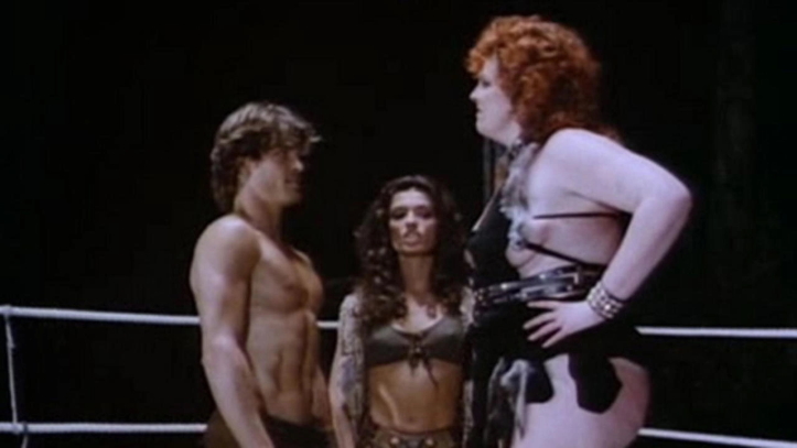 Seriously, this one is a total hoot from start to finish. After completely trashing a bar set, Deathstalker agrees to take Reena back to her homeland. It won’t be easy, though, because they’re chased by a gang of bandits, fight off a graveyard of zombies, and enter into a wrestling match with a giant woman.