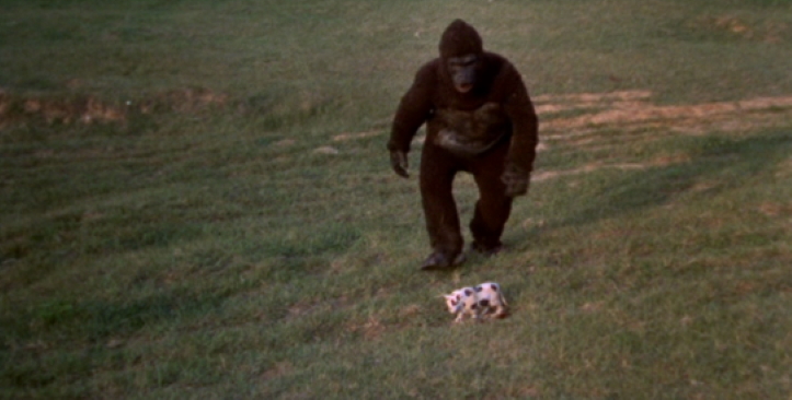 Yes, the ape falls in love with the girl, because wouldn’t you get the hots for a different species that was 1/8th your size? She’s not so crazy about this interspecies romance, however, preferring to spend the rest of her runtime screaming and screaming and screaming.