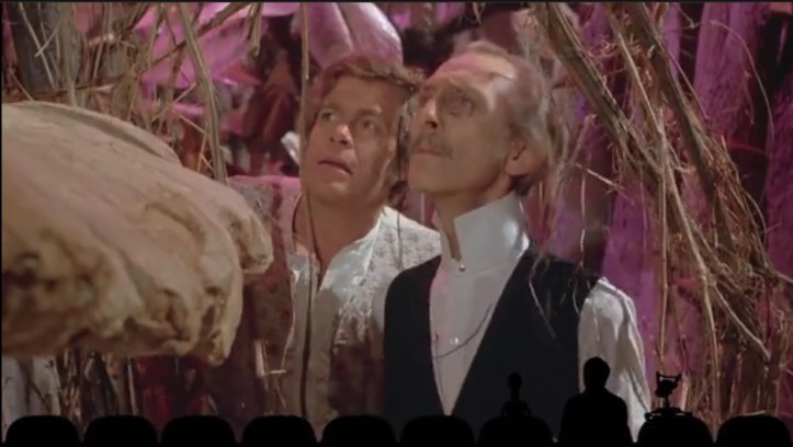 In retrospect, it’s curious that Dietz was portrayed by Anthony Ainley, who was still about five years away from appearing on Doctor Who as the Master. I suppose it’s not surprising that the Jonah and the Bots didn’t recognize him, since he doesn’t have a goatee. Though if you take a screenshot of him from this movie and compare it to one of him in Doctor Who, the resemblance pops out immediately. Quite a shame, as the prehistoric setting would make it a ripe target for references to the (admittedly terrible) Fifth Doctor serial “Time-Flight”. Even a Norelco jingle with a mention of the sonic screwdriver would have sufficed.