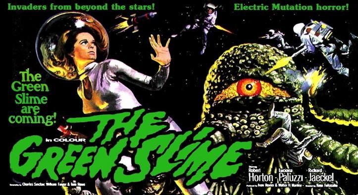 The Green Slime is one of those B-movies that defines B-movies. The acting is delightfully over-the-top. It is unabashedly sexist in that it comes from a time when men were men and women made sandwiches. To be fair though, the main female character is a medical doctor. There is a lot of masculinity going on here, but it never gets so bad that it ruins the movie. The special effects (the true star of the film) are cheap. extremely cheap. So cheap in fact, I couldn’t find any references to budget or box office revenues. Don’t hold it against the film. If they spent any money at all it would have ruined the charm of the film. Also, if you have the Blu-ray, it is fun to play spot the string.