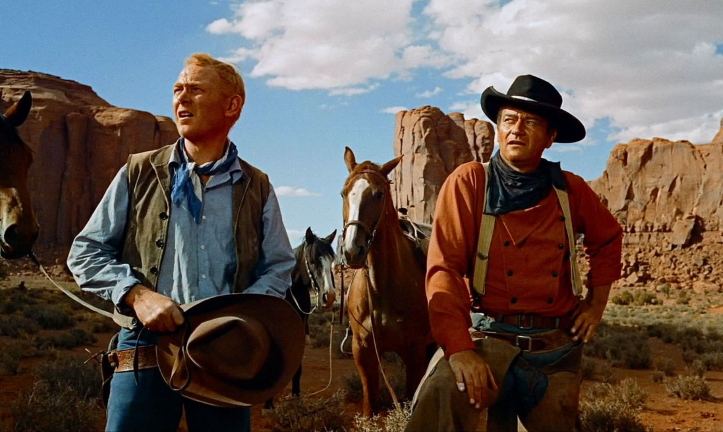 The Searchers is classic “Cowboys and Indians.” There’s this cowboy Ethan (that’s John Wayne, which even a non-Western girl like me can figure out), and he’s coming home from the Civil War. “Home” appears to mainly be his brother’s family, complete with an orphan named Martin who is part Cherokee Indian. Ethan’s got a real issue with Indians, although I get the impression he’s got a real issue with anyone in general. When Indians attack his brother’s homestead, Ethan goes searching for his two kidnapped nieces.