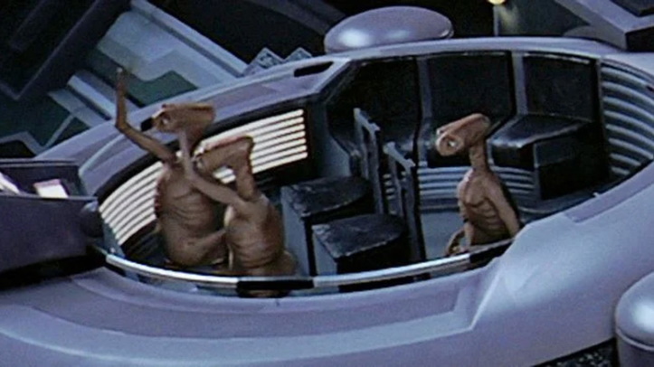 George Lucas and Steven Spielberg had fun nodding at each other in some of their biggest hits. In E.T. during the Halloween trick-or-treating scene, the disguised E.T. sees a kid dressed as Star Wars’ Yoda and says, “Home!” when he passes by. Did the creature know of Yoda’s race? It seems likely, as nearly two decades later, Lucas included a quick moment in Star Wars: The Phantom Menace in which E.T.’s race are clearly scene as part of the galactic senate.