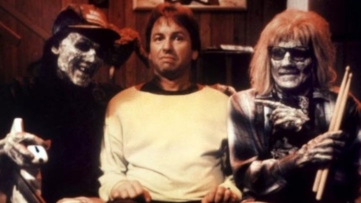 John Ritter plays Roy Knable, a TV obsessed snack food-shoveling pathetic turd of a man. His wife, Helen, resents his constant fondling of the remote control rather than her, and his two kids are bored of his couch-jockeying. Soon, as we have all experienced, a demonic satellite TV salesmen pawns off on Roy a huge new dish (boy, the early ’90s — remember when dishes where not the size of small pets?) that sucks him and his wife into a kooky universe of satanic TV parodies.