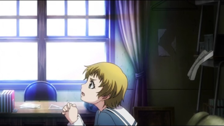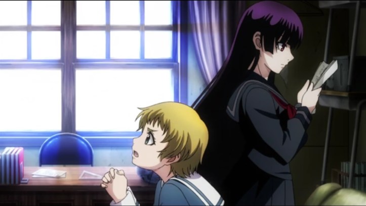 The story opens with club secretary Momoe Okonogi going over written testimonies regarding paranormal incidents at the school. As she does this, a variety of minor poltergeist activity occurs, though Momoe never observes it directly. Once she takes notice, Momoe becomes increasingly agitated until fellow club member Teiichi Niiya arrives. He appears quite distracted and occasionally makes unsettling verbal responses to Momoe’s innermost thoughts. Final member Kirie Kanoe enters the room, appearing to be angry for no discernible reason. After making a call to determine that the club’s president will once again be absent, the meeting begins. The proposed target to be investigated is an unused dumbwaiter that is said to occasionally run on its own, luring in unsuspecting students who are never heard from again. This is obvious hogwash. But as they check it out, the dumbwaiter switches on by itself. The door opens and a mysterious force sends Teiichi flying into the dumbwaiter, presumably dooming him to eternity in a hellscape from Clive Barker’s darkest fever dreams.