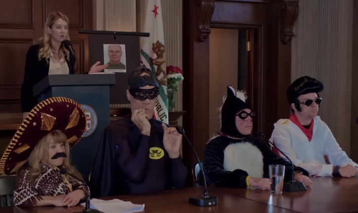 Why? Well, here’s that central concept thing. Detective Garrett Fowler, a hard-nosed, corrupt maverick LAPD detective is on his last warning in the Van Nuys precinct. His captain, who wants nothing more than to see Fowler gone, is delighted when the Mayor of Van Nuys (played by Cynthia Watros, who behaves as if she’s in an actual comedic movie and not some kind of stomach-churning disaster on video) assigns Fowler a new task. For you see, the Mayor is Fowler’s ex, and the split was acrimonious, and she wants to see Fowler fail and be thrown ignominiously off the force, and so…
