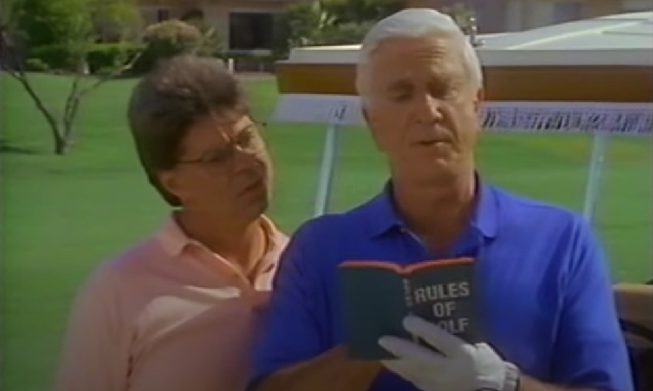 In the ’90s and at the top of his comedic stride, Nielsen agreed to star in not one, not two, but three videos parodying golf instructional tapes. When I heard this, I was a-quiver with anticipation. Would this de-mystify this sport for me? Or at the very least, keep me entertained?