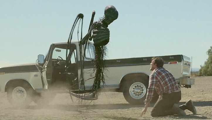 Each story shares a common setting: the isolated and heat-soaked desert. One can almost feel the heat radiating through the screen. The actors are all sparkling with sweat, and a yellowish haze hangs over the first half of the movie. Everyone that is introduced in Southbound seems to harbor some kind of secret that becomes increasingly more apparent and grim as the stories go on. It becomes apparent that this desert road is some kind of purgatory waiting room to the gates of hell, and the deeper the characters travel, the more likely they are to come upon some not-so-cool demons.