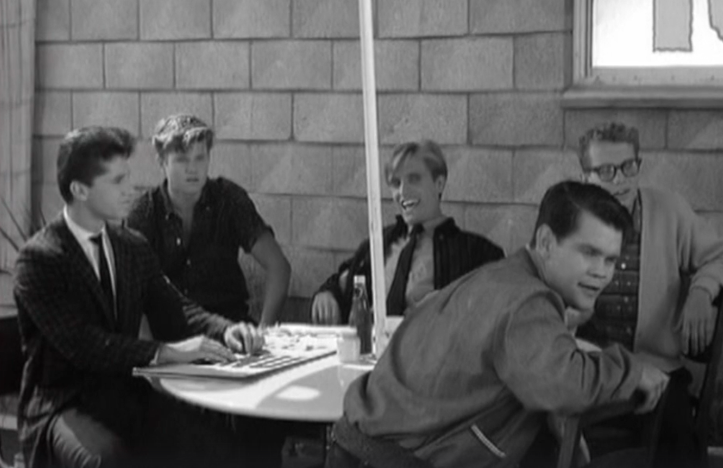 As Arch Hall, Sr. narrates the sad stories behind the quintet’s delinquency, the boys chop the car then turn it on its side and flee the scene. Heading to the junkyard run by Moose (Bruno VeSota), they unload the parts for sweet, sweet cash, and lay on the hip lingo in thick doses.