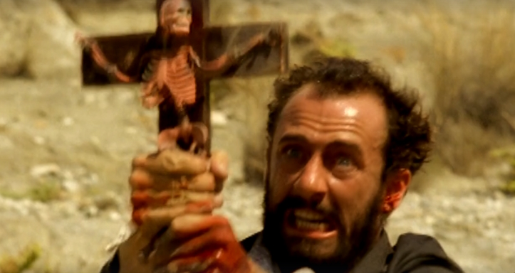 So never mind the plot. If you’re prepared to sit back and just enjoy the spectacle, this movie is ridiculously fun. There are all kinds of lunatic details to appreciate, and really, who could not love a soundtrack which blends elements of Ennio Morricone with the balls-out Irish punk of The Pogues? (The theme song of the film over the end credits, ‘Rake At The Gates Of Hell’ is one of the best things The Pogues ever did: raw, rough, wild, energetic, brilliantly melodic – awesome stuff.)