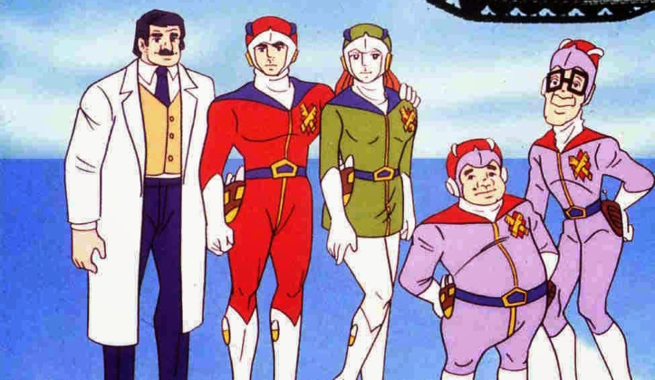 - Every Japanese super group needs one portly guy who can barely fit into his jumpsuit. Also, every super group needs conference chairs that sink into the floor and down into their vehicles.