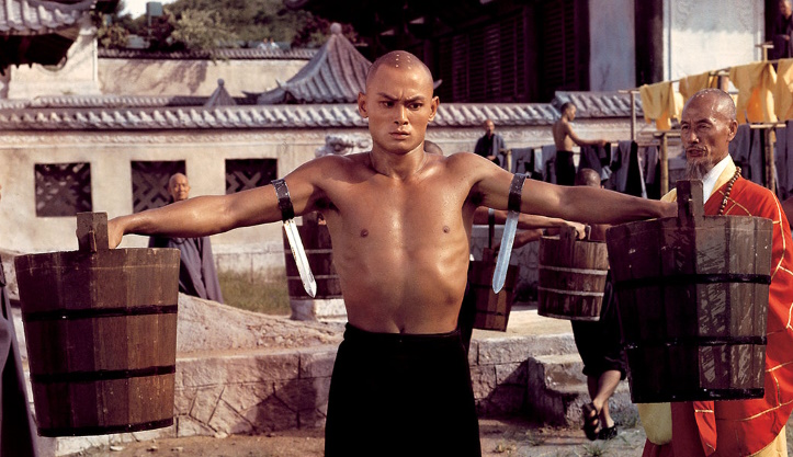 We don’t actually see San Te in all of the temple chambers, which is probably a good thing, but I’d estimate we’re treated to more than half, and, despite seeing the same basic scene over and over, it never really gets boring. Some of the exercises are painful to watch, like being jabbed with knives for putting your arms down; others, like headbutting sandbags, are played for laughs; and lots, like attacking the reflecting poles in a sort of Shaolin whack-a-mole game, are just plain cool. All of the training sequences manage to be unique or memorable, and none feel like they’re wasting your time.