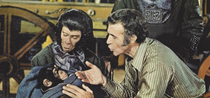 At first, these charming, evolved Apes become instant celebrities as they enjoy the modern luxuries of 1973. But human nature rears its ugly head in the form of Dr. Otto Hasslein, a science advisor to the president. When Zira reveals that she’s pregnant, Hasslein sees that as the first step of humanity’s demise and the rise of the future intelligent simian race. With the untimely death of their friend Milo, Cornelius and Zira realize they may have traveled to a far darker world than the one they left. Thanks to Hasslein’s manipulations, the couple and their new baby find themselves on the run, fleeing a group of men who see themselves as the saviors of humanity’s future.