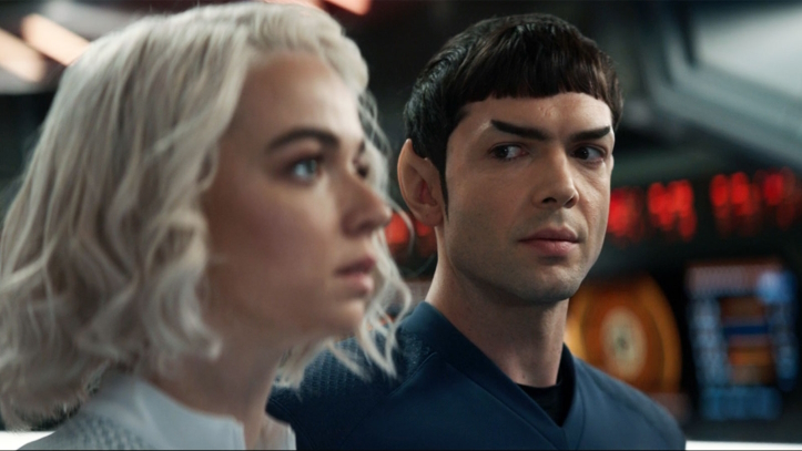 I do want to give special props to three of the cast, however. Mount’s Pike effortlessly takes the captain’s chair with his own style (and amazing hairdo), being more of a team diplomat and a father figure who is often happiest making everyone a meal. Pike struggles with the knowledge that one day he’ll become disfigured and severely disabled, wondering if there’s a way to accept or change this future. Also facing an uncertain future is Peck’s Spock, who’s younger version of this character is grappling with his dual heritage and emotions-vs-logic tug-o-war. He’s really good at what had to be an incredibly difficult role due to how iconic Spock is in Trek.