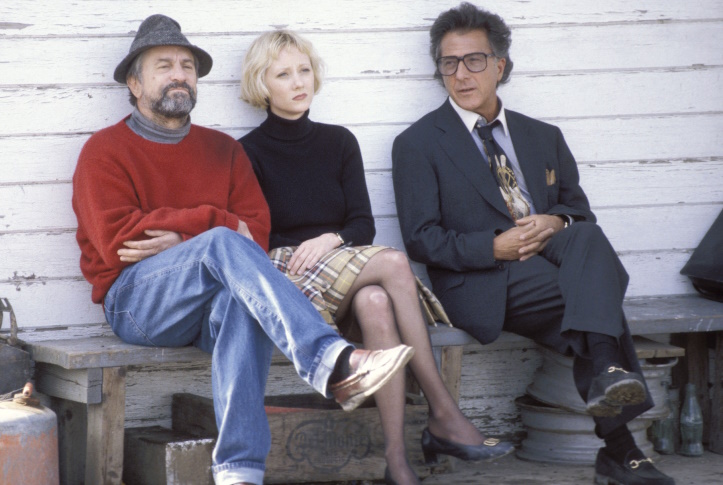 I can totally believe that there was a short filming time involved here. For one, Wag the Dog is a very short movie, clocking in at a brief 97 minutes. There is absolutely no extraneous information here, no side plots, no outside character development. The movie stays strictly on the subject of the fabricated war. The dialogue is smart and funny, a bit of a precursor to early Aaron Sorkin West Wing speak. The actors are all big names who deserve the fame they get — Robert De Niro, Dustin Hoffman, Anne Heche, Woody Harrelson, William H, Macy… all the kinds of names you see on awards statues and rarely in the tabloids. The kind of people who can probably come in and get the job done. There are no special effects, no stunts, no gun chases (well, one gun chase), and no fancy-schmancy technological efforts detracting from the story. The movie is entirely driven by plot and dialogue, and it works. It works brilliantly.