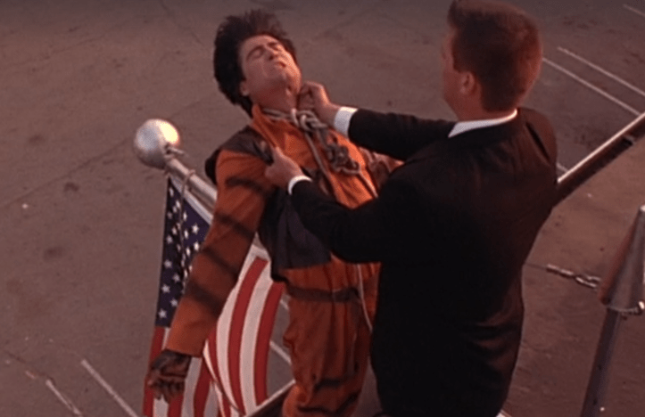 Badly written and badly directed, Class of 1999 II: The Substitute is, well… a bad movie. And by “bad” I really mean “Oh, it’s horrendous, but I’ve seen the complete Ed Wood filmography so my perceptions are a bit skewed and my brain is likely damaged.” The original was a fun exploitation flick buoyed by the direction of Mark Lester and with a cast that included Pam Grier, Stacy Keach and Malcolm McDowell. This one features the guy who replaced Jean Claude van Damme in the Kickboxer movies and the director of The Notebook. Except Cassavetes is unfortunately not directing this movie, as that role is filled by a stuntman. I’m pretty sure the casting decisions for this movie were made by drawing names out of a hat.