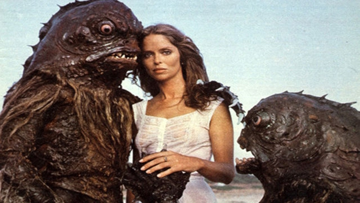 Flinthart’s review: I got curious about The Island of the Fishmen because it was made as late as 1979 or so, and it appears to star none other than Barbara Bach — one time Bond Girl, and possibly better known as Missus Ringo Starr… oh, I’m sorry, it’s “Lady Starkey,” isn’t it? She was pretty much at her peak as an actor at this point, so you’d figure she’d be playing in something decent, except I guess Hollywood had worked out that what she was best at was basically just… looking good. For limited periods.