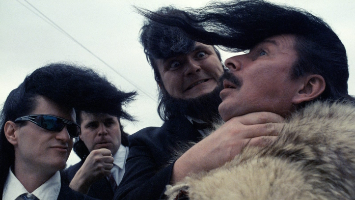 Now, let’s add in the fact that musically, they’re really bloody good. The first number you hear is a classic Russki ‘Cossack Song’ played straight — and played very, very well. But as they hit the US and it becomes clear that America’s not ready for a Russki oompah/klezmer thing, they become musical chameleons playing rock, pop, blues, and country/western. The peak is probably the moment where a long-lost cousin (yes, with the same quiff and shoes) that they stumble across in Texas steps up in a biker bar to become their new lead singer with a rather fine rendition of Steppenwolf’s ‘Born To Be Wild.’ With this addition, their musical ensemble is complete. They win over the bikers, and from there it’s a straight shot to Mexico where the bass guitarist (who they’ve brought with them for the entire journey, packed in ice on the roof of their car) thaws out and comes to life, and they find their place in the musical pantheon.