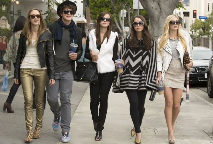 Many of these themes are woven throughout the movie as we meet Marc, an awkward gay teenager navigating his first day at a new high school. There, he befriends the feisty Rebecca. From their first conversation, they develop a breezy, playful chemistry. On a whim, Rebecca dares Marc to help her break into the wealthy enclave of one of his past hookups. Marc is stunned by how stealthy his new friend snaps the locks and waltzes into the Calabasas-based mansion, stealing a wad of $100 bills and a designer purse. To seal the deal, they take the owner’s convertible Porsche for a joyride, going down to the famed Melrose Drive on an afternoon shopping spree.