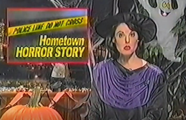 We open on a WNUF TV28 Evening News broadcast, with anchors Deborah Merritt (Leanna Chamish) and Gavin Gordon (Richard Cutting) decked out in Halloween costumes as they warn of the dangers of tooth decay and indulge in cornball witticisms. Field reporters interview a local dentist who is offering to buy back Halloween candy for a dollar per pound as well as Angela Harris, the founder of H.A.R.V.E.S.T., a fundamentalist Christian group opposed to the “Satanic” nature of Halloween.