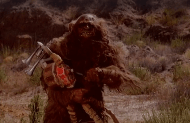 - Aside from the introduction of technology and advanced “weps” in the second half of the film, this one relies as much on the sword & sorcery movies of the day as it does on the post-apocalypse films. Overall, that gives it an uneven tone, and the antics of Aargh (the Bigfoot creature) border on slapstick. It’s not a terrible movie, but it really is an odd one.