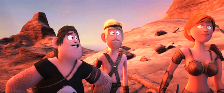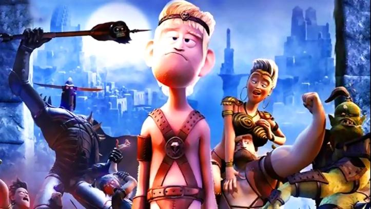 Produced in Denmark (and originally voiced in Danish) by the guys who made a very popular animated movie called The Trouble with Terkel (seriously, it was playing in some theaters here this summer even though it was made 12 years ago), this film centers on a scrawny slacker who lives among a village of legendary — and muscular — warriors. When pulling sentry duty one night he fails to notice an incoming attack, and his entire tribe is kidnapped by a dark lord — except for him because, well, he’s not much of a threat. However, if he doesn’t free his brethren fast, the dark lord will use their blood to become a monstrous demon and take over the world. His only hope to help on his quest is a hormonal bard, an elf who lost his shelf, and a maiden who chews iron for breakfast.