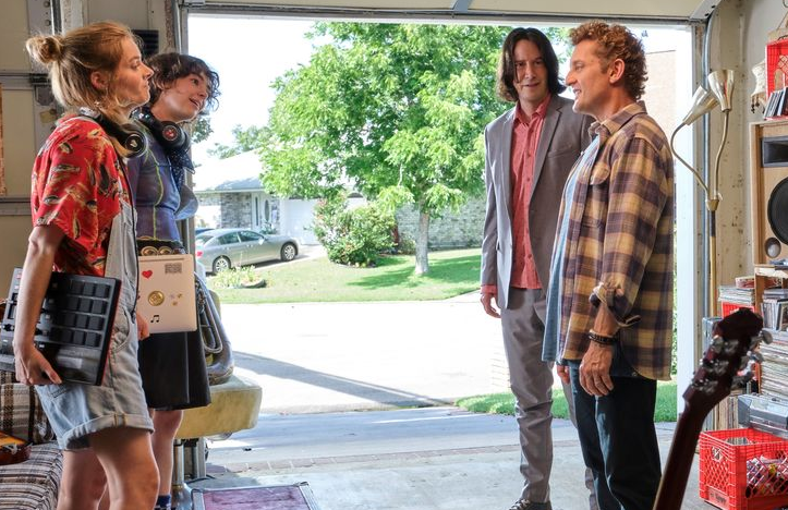 Quick backtrack for those not in the know. The film concerns William “Bill” S. Preston Esq. (Alex Winter) and Ted “Theodore” Logan (Keanu Reeves), two former teenage slackers who are now… adult. Slackers. Once, 31 years years prior, they were visited by Rufus the time traveler (George Carlin) who taught them that one day a song written by them will unite and save the world. But they won’t get there unless they pass their high school history presentation, so he gave them an ‘American’ TARDIS and sent them through history so they could learn it good. Then two years later an evil future guy sent robots to kill them, they met and defeated Death (William Sadler), and they came back to play an ‘excellent’ concert in front of 25K people. With Death on bass.