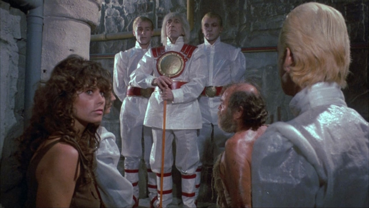 If the very title of this movie didn’t spoil it for you, I’m about to reveal the big twist here: Yor: The Hunter from the Future is, um, set in the future. We find out that Yor and people like him are primitive descendants of survivors of a nuclear holocaust (which, I guess, brought dinosaurs back somehow?). But there are also advanced survivors who have laser guns, androids, and spaceships, so Yor finds himself at a slight disadvantage with only a crusty loincloth and a fire sword (don’t call it a lightsaber!) at his disposal.