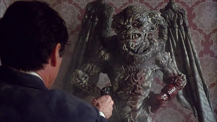 While the special effects are a mixed bag, they’re not quite as bad as I remember them being. One thing that helps is that the creatures are mostly kept in dim lighting, so you can’t get a good look at any flaws in the design. Mind you, there is the occasional slip-up. One that stands out in this manner involves Hackshaw’s gargoyle, which is a very well-made puppet. However, in long shots the puppet gets replaced by a guy in a suit which is not so well designed, making for a jarring transition between the two. But for those of you who believe that you can contract leprosy from viewing too much CGI, this production is Certified 100% Practical Effects.