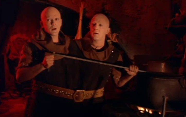 I was charmed by the hilarious accents of the European knight sampler, the two-headed assistant who always talks with both mouths in unison, and the chess-playing ape. Even the villains — Grand Moff Tarkin with a turban and Weenie the Backstabber — fill the time well with scenery chewing. The truly unbelievable part of this movie is how long the group keeps Weenie around despite his obvious inclination to betray them all.